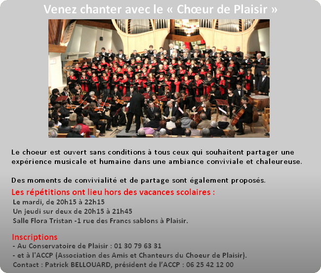 Bienvenue sur le site des Amis et Chanteurs du Chœur de Plaisir